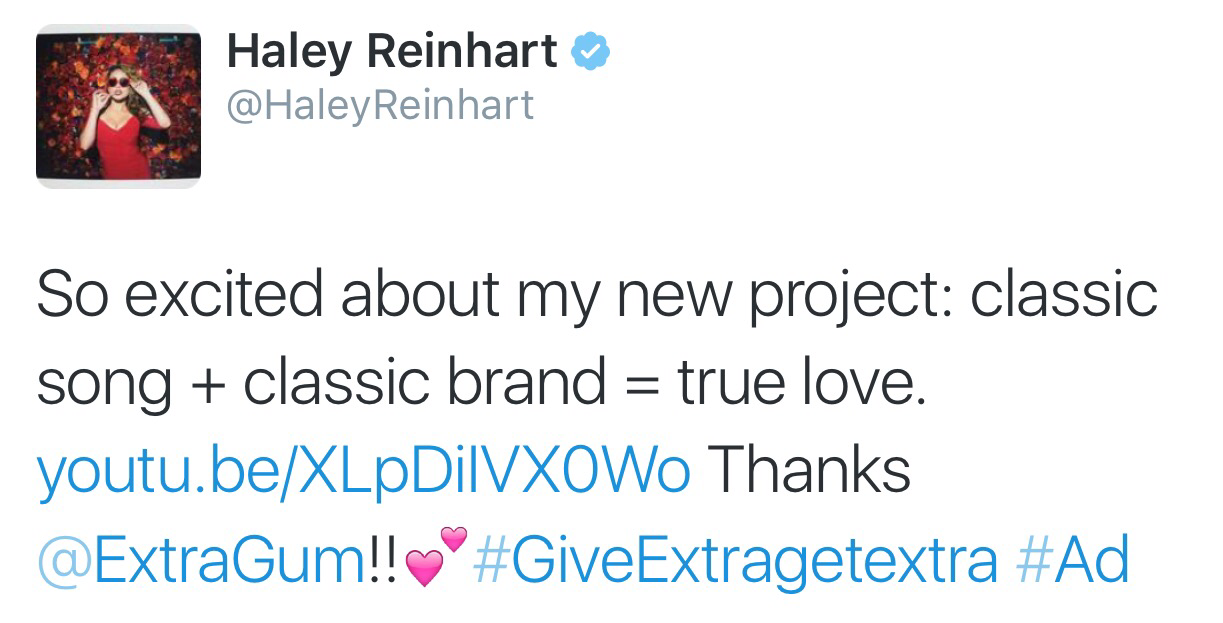 In this brand new “Extra Gum” ad, Haley sings a beautiful rendition of an Elvis classic, “Can’t Help Falling In Love”. Haley also revealed that there is a full version of the song that will be released Friday, October 9th on iTunes! [UPDATE: The song is available now]