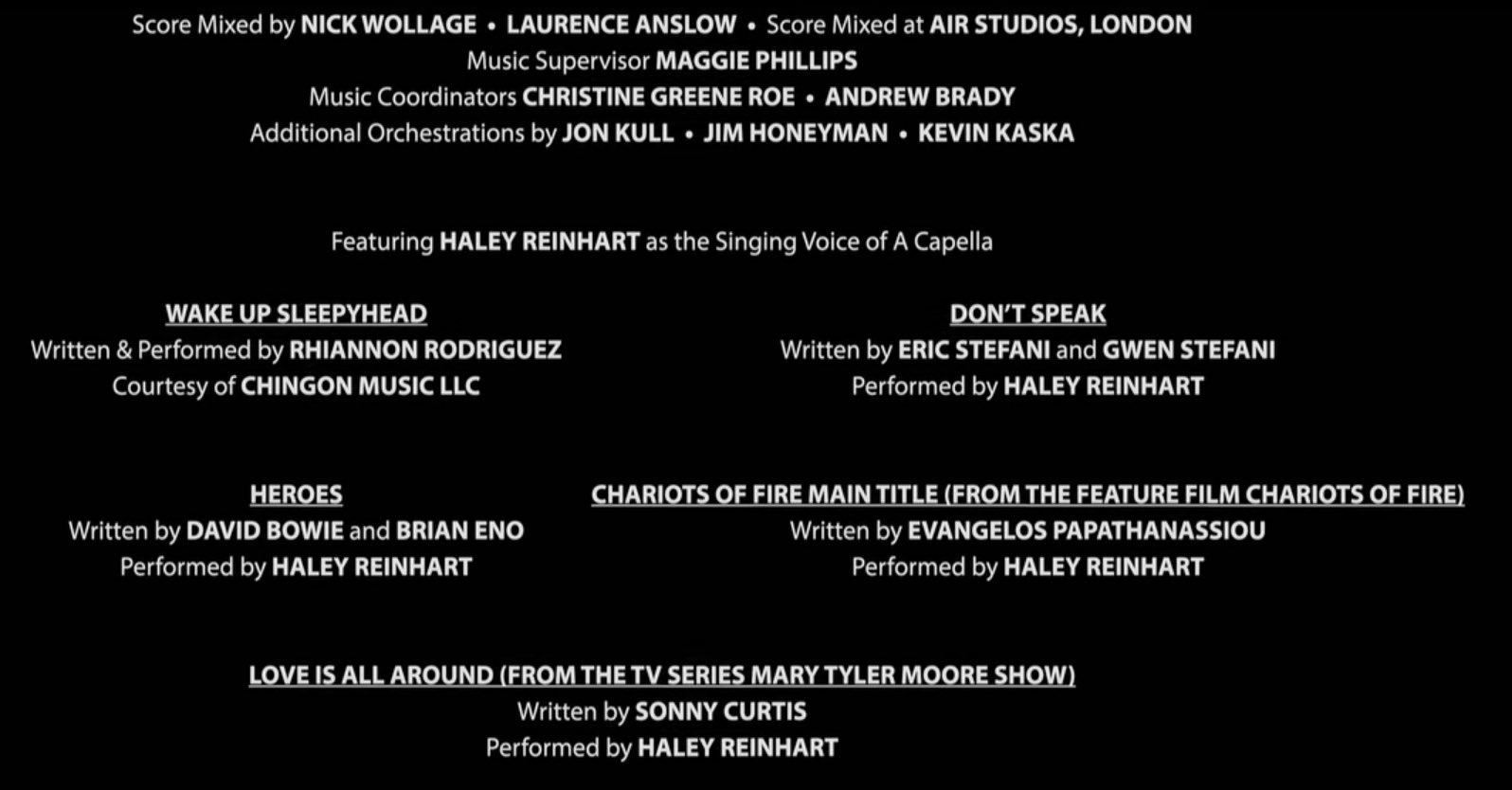 Fun Fact: Haley also contributed in other ways to the movie. In the end credits, Haley is credited as the singing voice for her daughter “A Capella” as well as contributing a portion of the songs “Heroes”, “Don’t Speak” & “Chariots of Fire”
